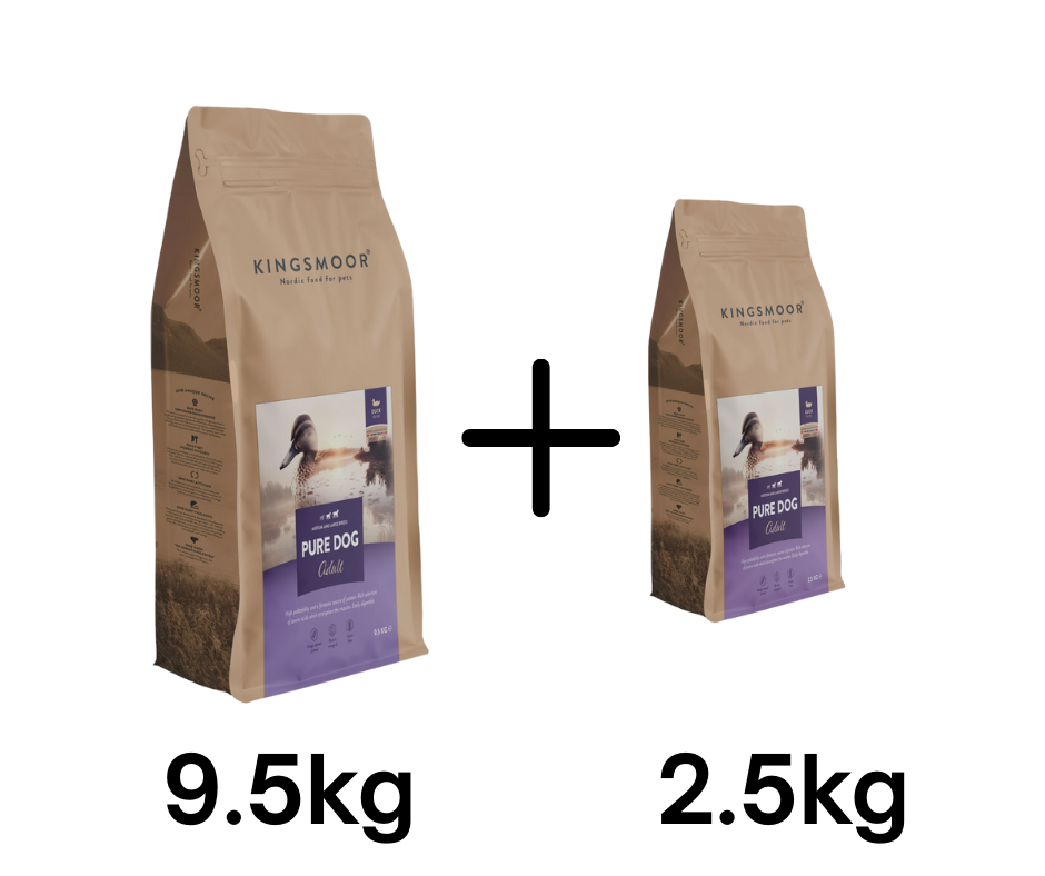 Forarbejdet animalsk protein (26% and), ærter (ærtemel) (15%), hestebønner (15%), ærtestivelse (9%), kartoffelstivelse (9%), animalsk fedtstof (8,5% fjerkræ/kylling), roesnitter (tørrede fibre) (5,5%), fermenteret raps (4%), hydrolyseret animalsk protein (3% kylling), fiskeolie (2%), tang (1%), ølgær (renset) (0,5%), natriumklorid (0,5%) Kingsmoor urter (0,125%) (tang, hyben, æble, burresnerre, blåbær, rabarber, birkebark, lucerneurt, brændenælde, mælkebøtte med rod, kamille, hvidtjørn, enebær, valnød, anis), cikorieinulin (0,1%), lecithin (0,1%), gulerødder (tørrede) (0,1%)