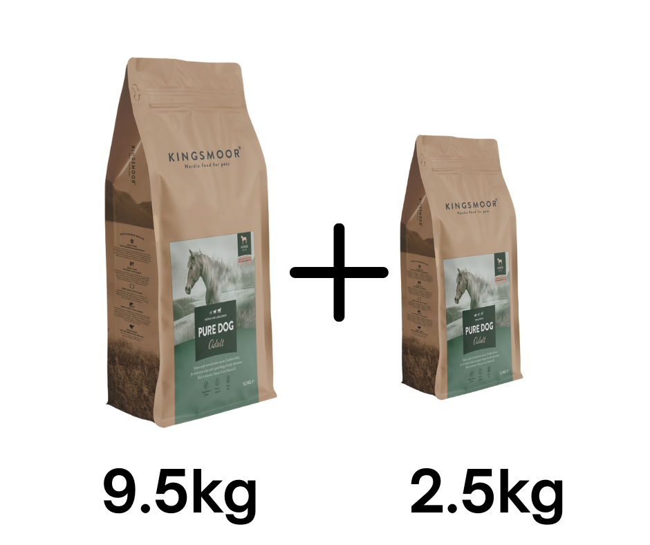 Forarbejdet animalsk protein (14% hest), ærter (ærtemel) (14%), hestebønner (14%), ærtestivelse (11,5%) kartoffelstivelse (11,5%), forarbejdet animalsk protein – grever (svin) (8%), animalsk fedtstof (8% svinefedt), roesnitter (tørrede fibre) (8%), fermenteret raps (4%), fiskeolie (2,5%), fiskeprotein (hydrolyseret) (1%), tang (1%), natriumklorid (1%), ølgær (renset) (0,5%), Kingsmoor urter (0,125%) (tang, hyben, æble, burresnerre, blåbær, rabarber, birkebark, lucerneurt, brændenælde, mælkebøtte med rod, kamille, hvidtjørn, enebær, valnød, anis), cikorieinulin (0,1%), lecithin (0,1%) gulerødder (tørrede) (0,1%)