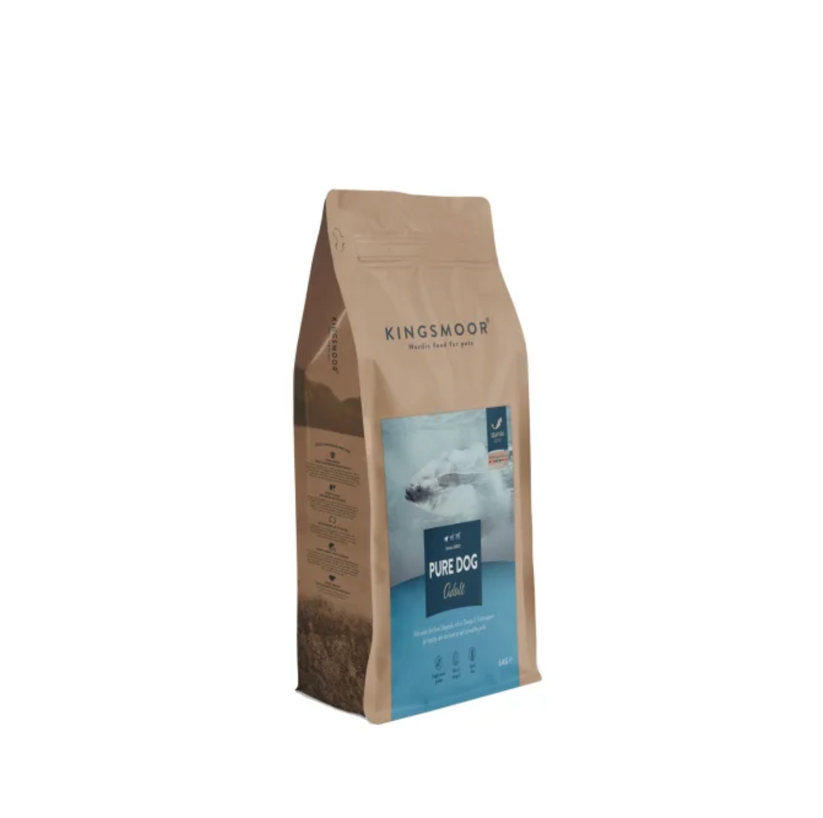 Fiskemel (21%), ærter (ærtemel) (16%), hestebønner (15%), vegetabilsk olie og fedtstof (rapsolie raffineret) (11%), ærtestivelse (10%), kartoffelstivelse (10%), roesnitter (tørrede fibre) (7,4%), fermenteret raps (4%), fiskeolie (1%), tang (1%), natriumklorid (1%), dicalciumfosfat (1%), ølgær (renset) (0,5%), Kingsmoor urter (0,125%) (tang, hyben, æble, burresnerre, blåbær, rabarber, birkebark, lucerneurt, brændenælde, mælkebøtte med rod, kamille, hvidtjørn, enebær, valnød, anis), cikorieinulin (0,1%), lecithin (0,1%), gulerødder (tørrede) (0,1%), kaliumklorid (0,1%)