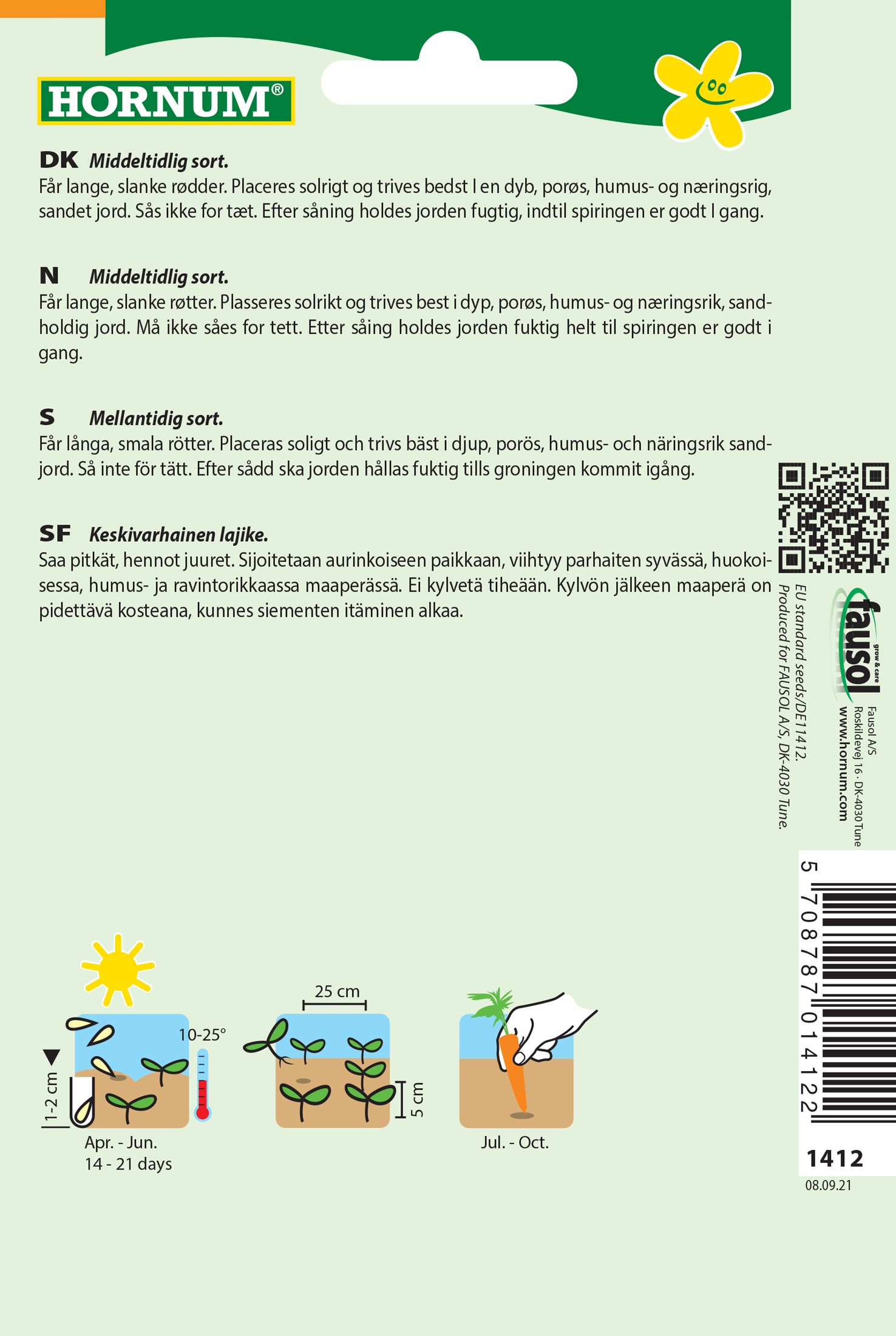 Får lange, slanke rødder. Placeres solrigt og trives bedst I en dyb, porøs, humus- og næringsrig, sandet jord. Sås ikke for tæt. Efter såning holdes jorden fugtig, indtil spiringen er godt I gang.