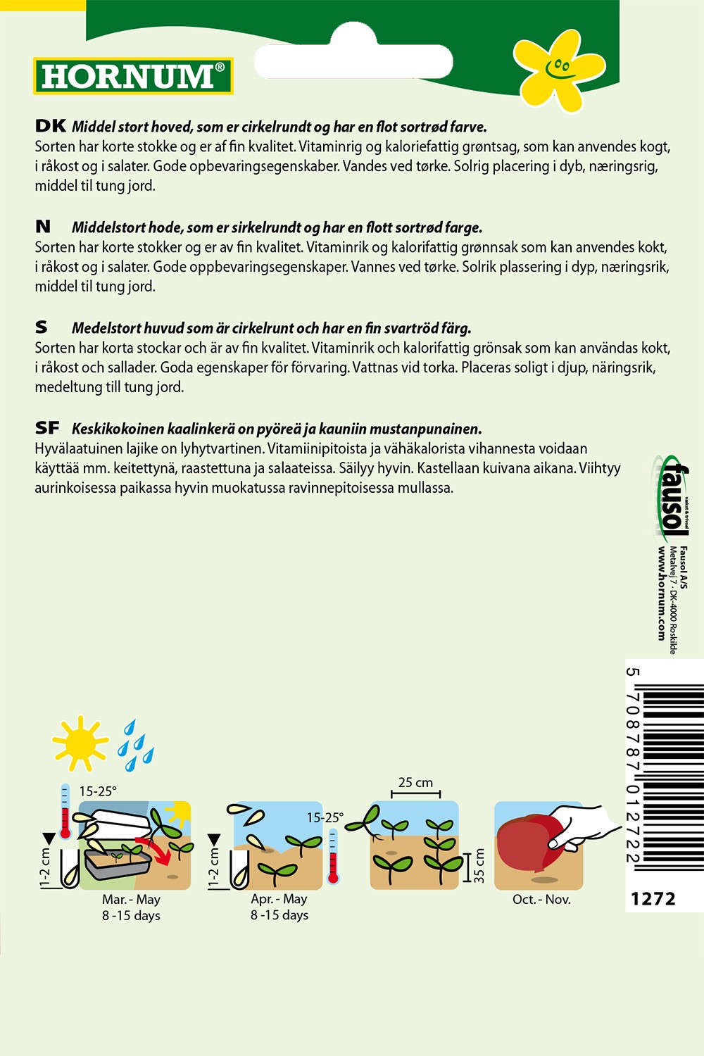 Sorten har korte stokke og er af fin kvalitet. Vitaminrig og kaloriefattig grøntsag, som kan anvendes kogt, i råkost og i salater. Gode opbevaringsegenskaber. Vandes ved tørke. Solrig placering i dyb, næringsrig, middel til tung jord.
