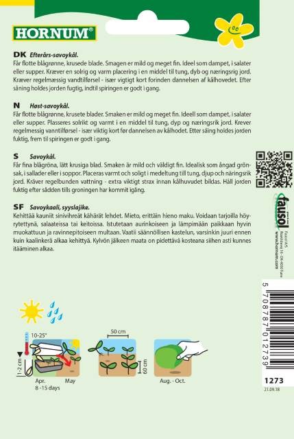 Får flotte blågrønne, krusede blade. Smagen er mild og meget fin. Ideel som dampet, i salater eller supper. Kræver en solrig og varm placering i en middel til tung, dyb og næringsrig jord. Kræver regelmæssig vandtilførsel - især vigtigt kort forinden dannelsen af kålhovedet.