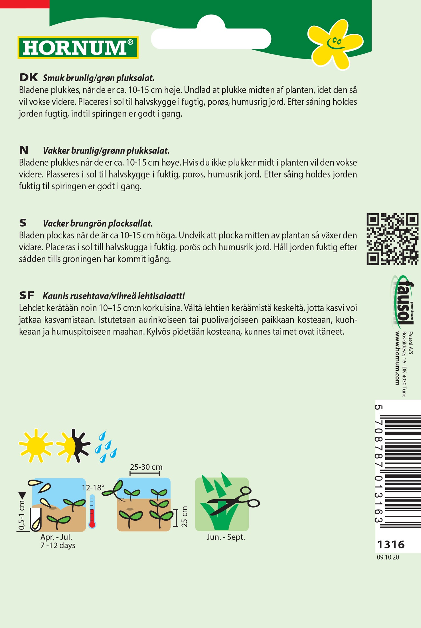 Bladene plukkes, når de er ca. 10-15 cm høje. Undlad at plukke midten af planten, idet den så vil vokse videre. Placeres i sol til halvskygge i fugtig, porøs, humusrig jord.