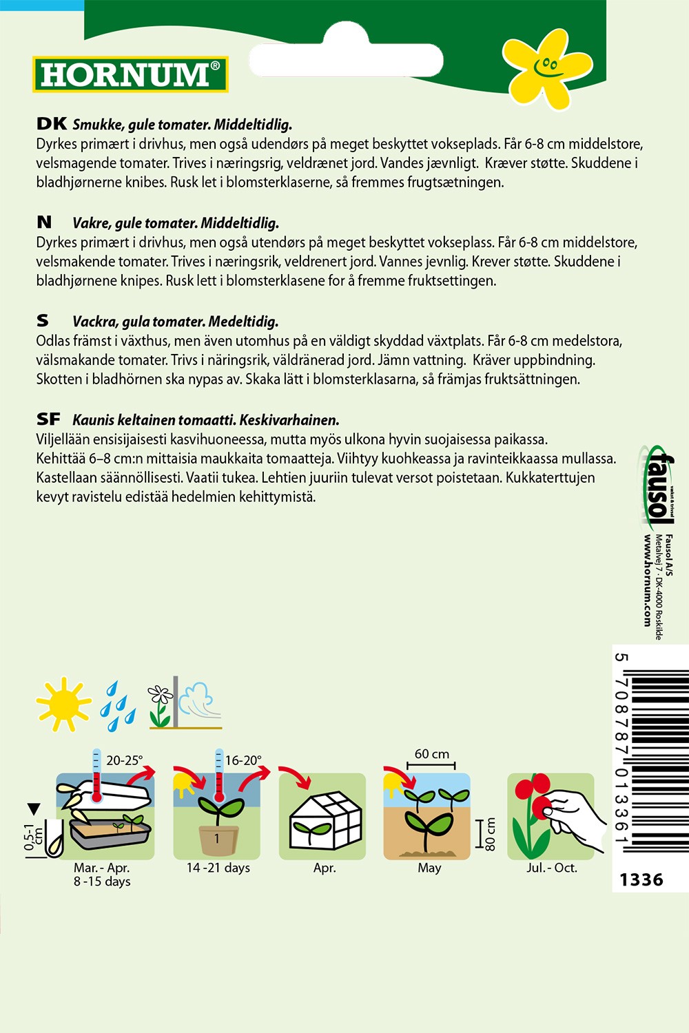 Dyrkes primært i drivhus, men også udendørs på meget beskyttet vokseplads. Får 6-8 cm middelstore, velsmagende tomater. Trives i næringsrig, veldrænet jord. Vandes jævnligt. Kræver støtte. Skuddene i bladhjørnerne knibes. Rusk let i blomsterklaserne, så fremmes frugtsætningen.