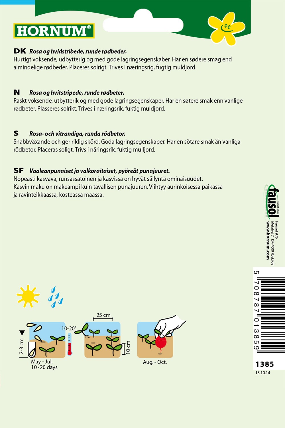 Hurtigt voksende, udbytterig og med gode lagringsegenskaber. Har en sødere smag end almindelige rødbeder. Placeres solrigt. Trives i næringsrig, fugtig muldjord.