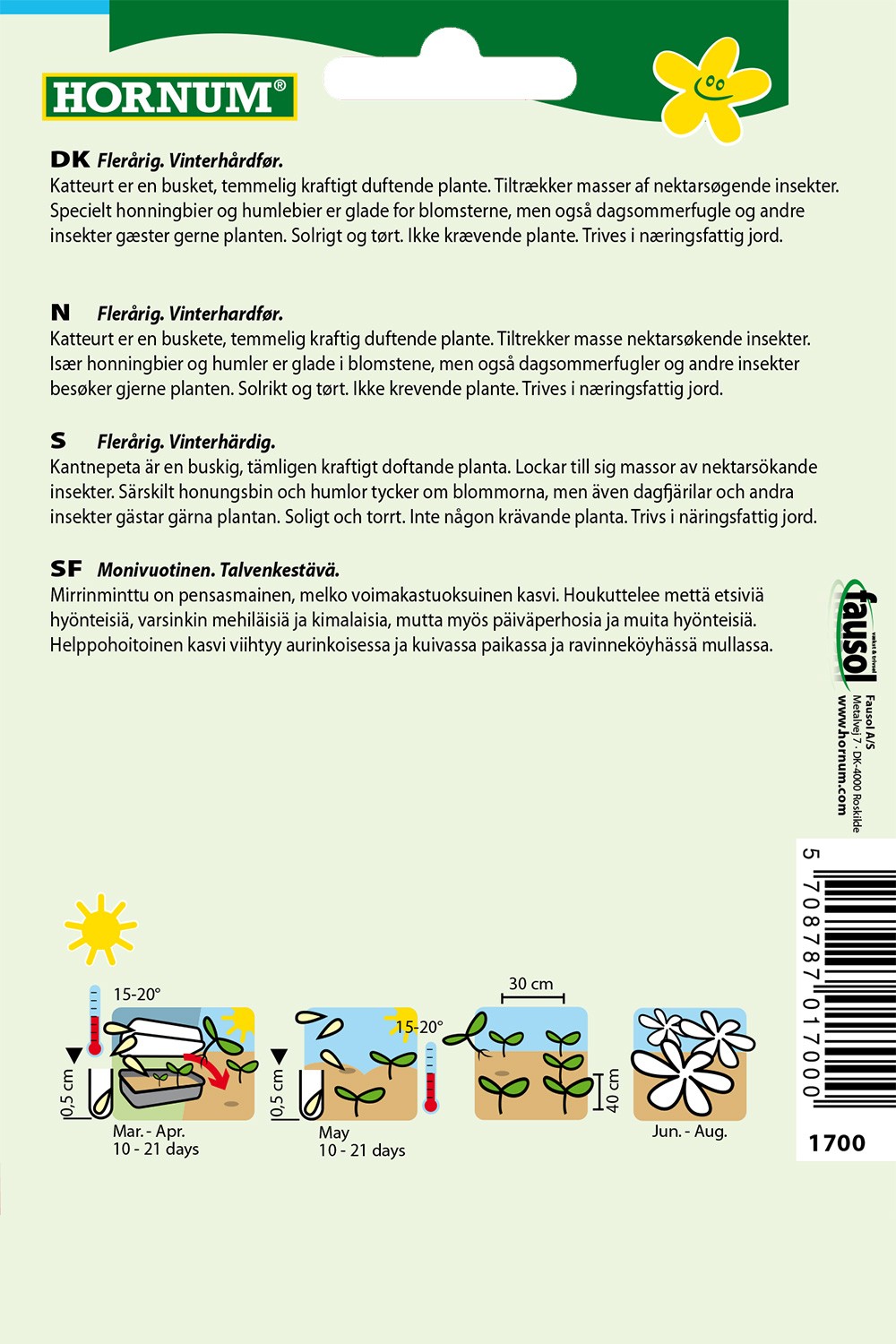 Katteurt er en busket, temmelig kraftigt duftende plante. Tiltrækker masser af nektarsøgende insekter. Specielt honningbier og humlebier er glade for blomsterne, men også dagsommerfugle og andre insekter gæster gerne planten. Solrigt og tørt. Ikke krævende plante. Trives i næringsfattig jord.