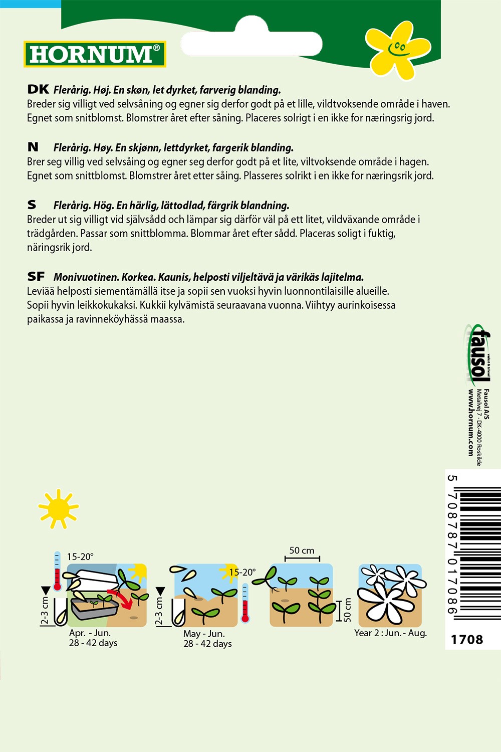 Breder sig villigt ved selvsåning og egner sig derfor godt på et lille, vildtvoksende område i haven. Egnet som snitblomst. Blomstrer året efter såning. Placeres solrigt i en ikke for næringsrig jord.