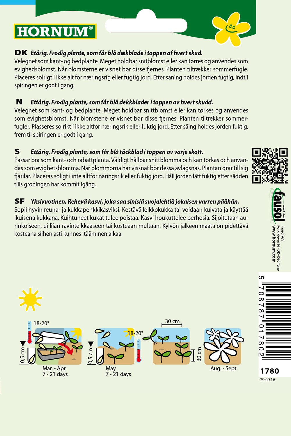 Velegnet som kant- og bedplante. Meget holdbar snitblomst eller kan tørres og anvendes som evighedsblomst. Når blomsterne er visnet bør disse fjernes. Planten tiltrækker sommerfugle. Placeres solrigt i ikke alt for næringsrig eller fugtig jord.