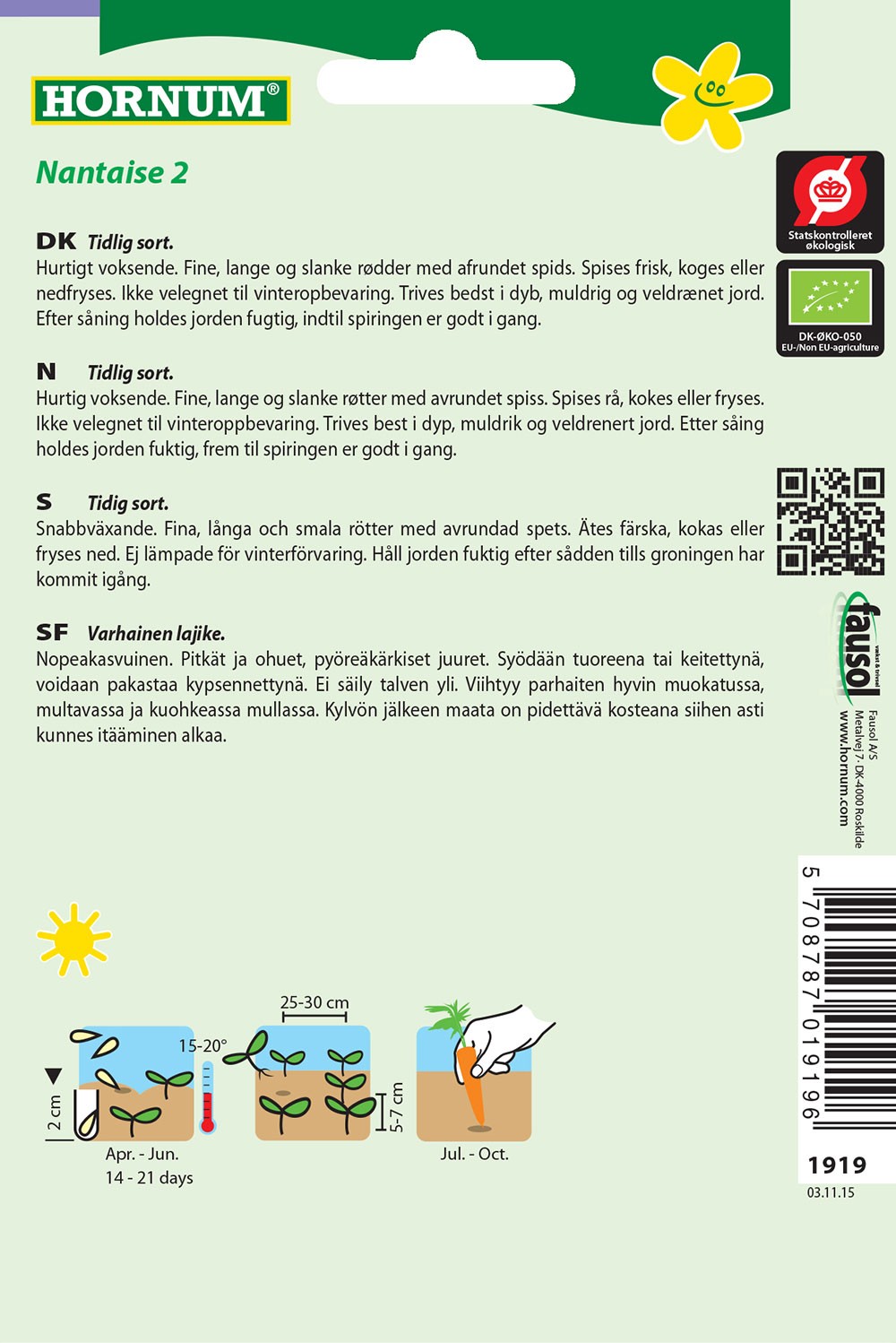 Hurtigt voksende. Fine, lange og slanke rødder med afrundet spids. Spises frisk, koges eller nedfryses. Ikke velegnet til vinteropbevaring. Trives bedst i dyb, muldrig og veldrænet jord. Efter såning holdes jorden fugtig, indtil spiringen er godt i gang.