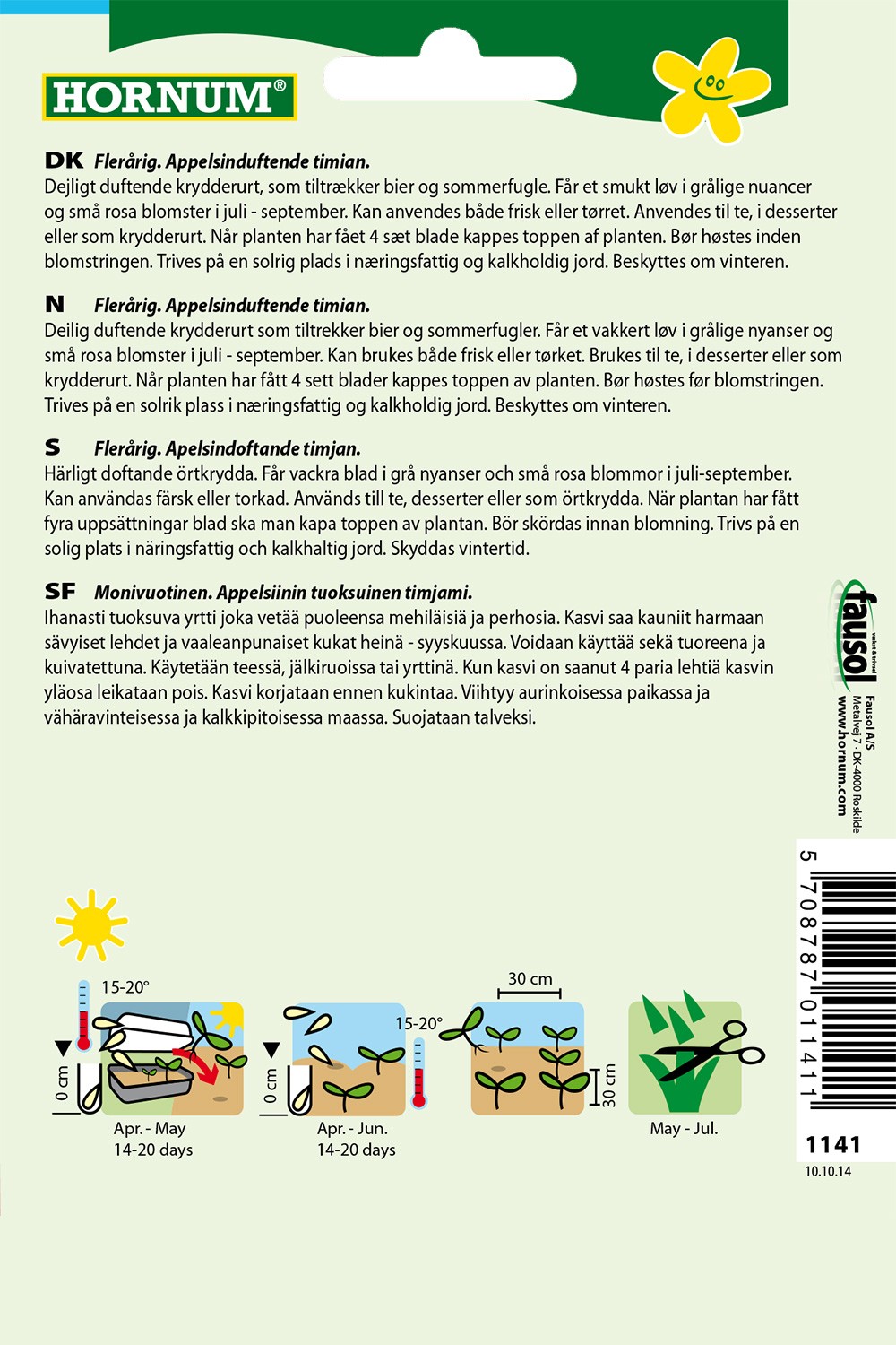 Dejligt duftende krydderurt, som tiltrækker bier og sommerfugle. Får et smukt løv i grålige nuancer og små rosa blomster i juli - september. Kan anvendes både frisk eller tørret. Anvendes til te, i desserter eller som krydderurt. Når planten har fået 4 sæt blade kappes toppen af planten. Bør høstes inden blomstringen. Trives på en solrig plads i næringsfattig og kalkholdig jord. Beskyttes om vinteren.