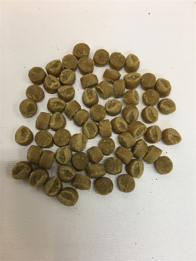 Analyse: Protein 20%, fedt 5%, råaske 8%, råfibre 2%, fugt 17%.