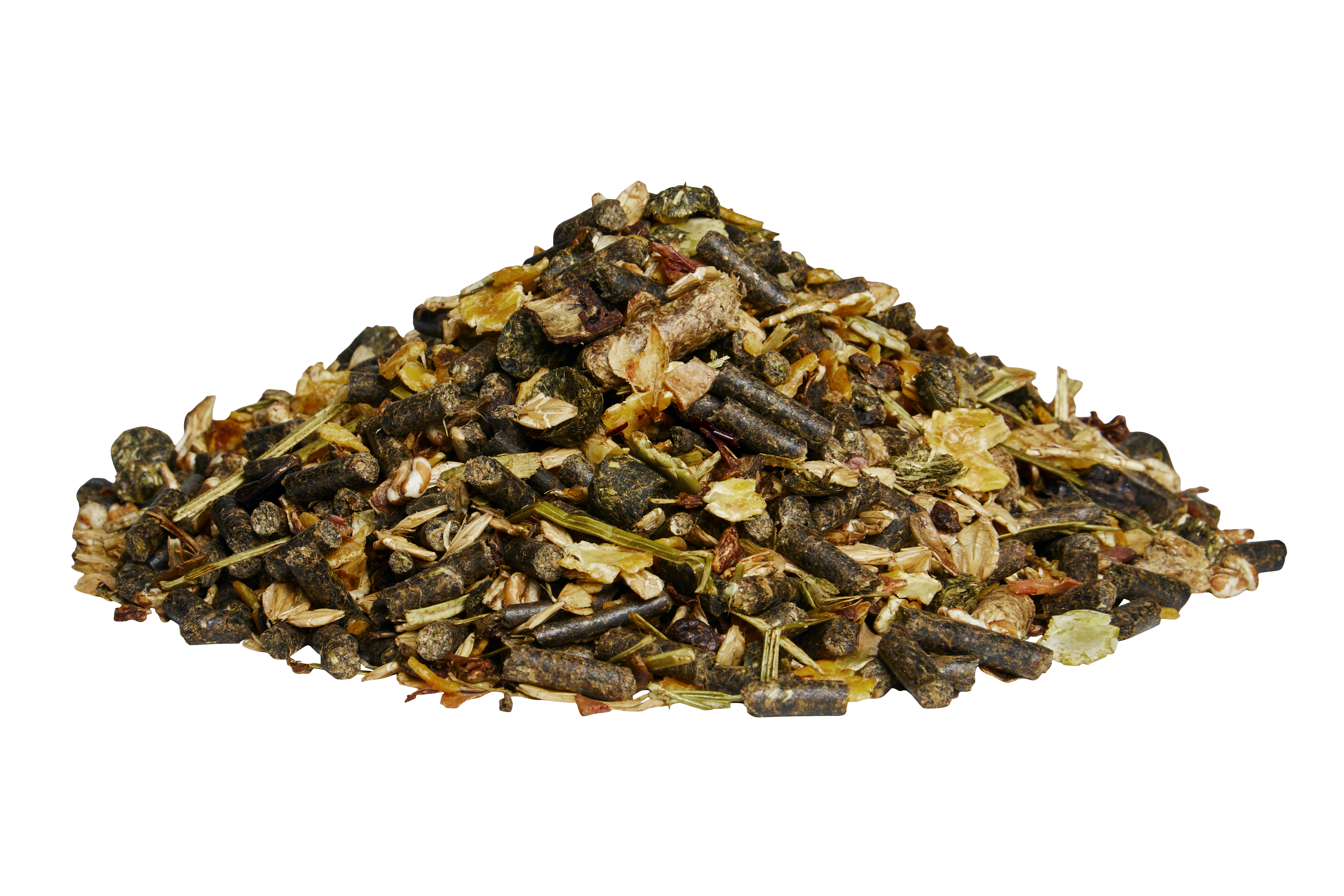 Mange sportsheste mister interessen for grovfoderet, når de er på tur. Vi har derfor tilført ekstra B-vitaminer, som stimulerer fiberapettitten hos sportshesten på tur, og så er der kræset for den gode smag med mynte, anis, timian og johannesbrød.