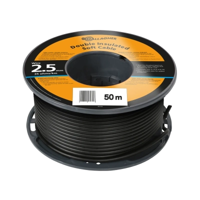 Dobbeltisoleret fødeledning for at tilslutte spændingsgiveren med hegnet og for at udføre installationer under jorden, f.eks. under ledåbninger. Benyt 1,6 mm kabel til kortere strækninger. For afstande over 30 m benyt 2,5 mm kabel.